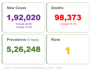 Statistics of Breast Cancer in India in year 2022 at a glance: