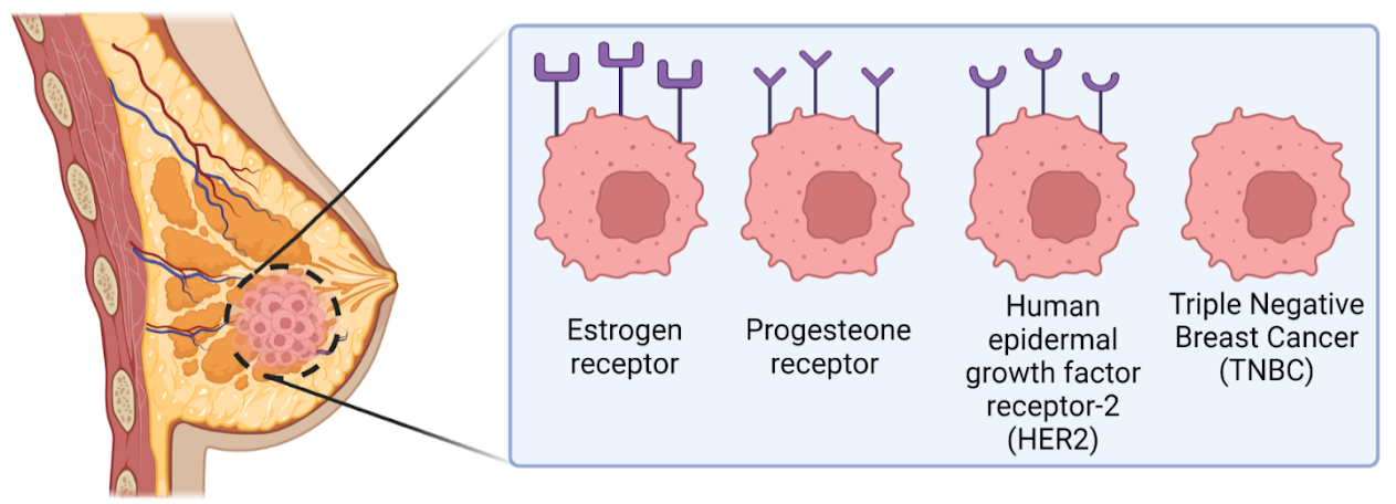 Oncologists classify breast cancer subtypes by receptor cell status. Receptors are protein molecules in or on cells’ surfaces. They can attract or attach to certain substances in the blood, including hormones like estrogen and progesterone.